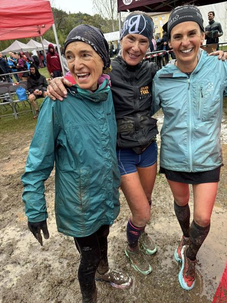 Cursa de muntanya duríssima (i aquesta vegada encara més per l’ aiguat) la Meritxell Salvador, la Dolo Ruiz i la Veronique Foulon han pres part de la prova anomenada «la no tant curta», de 14 km amb 700 metres de desnivell positiu.